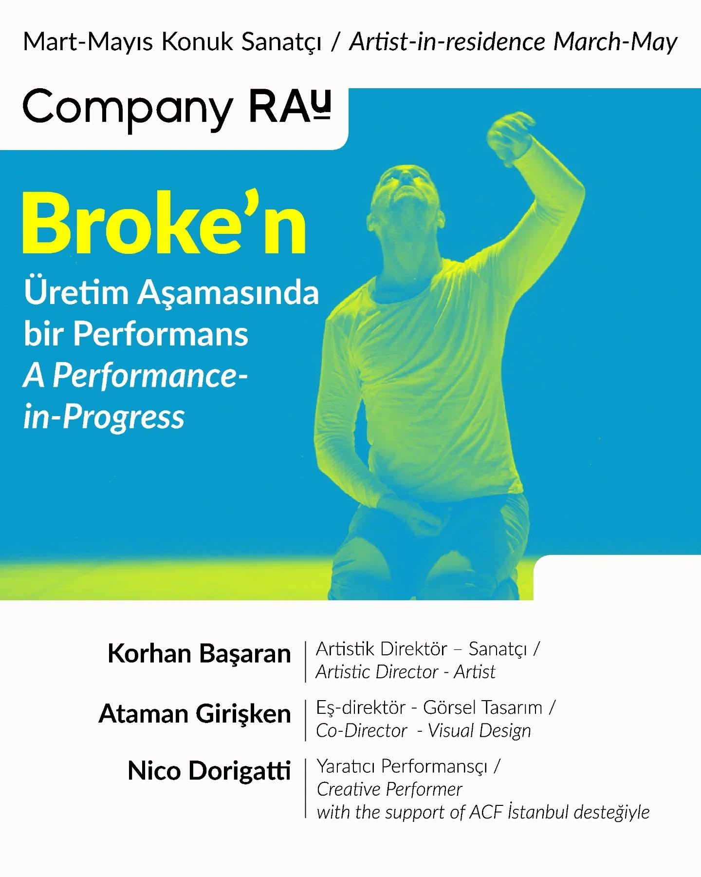 During the March–May period, Korhan Başaran (Company RAu) continued the development of his work Broke’n—both as a performative show and as an immersive audiovisual experience—together with Ataman Girişken and Nico Dorigatti (who joined the project with the support of ACF-Istanbul), as part of a creative process hosted by StudioMAHAL KSP. On May 31st, they will present a ‘work in progress’ performance at the opening of the StudioMAHAL Artist-in-Residence Program, offering a presentation that shares this multidisciplinary artistic process.