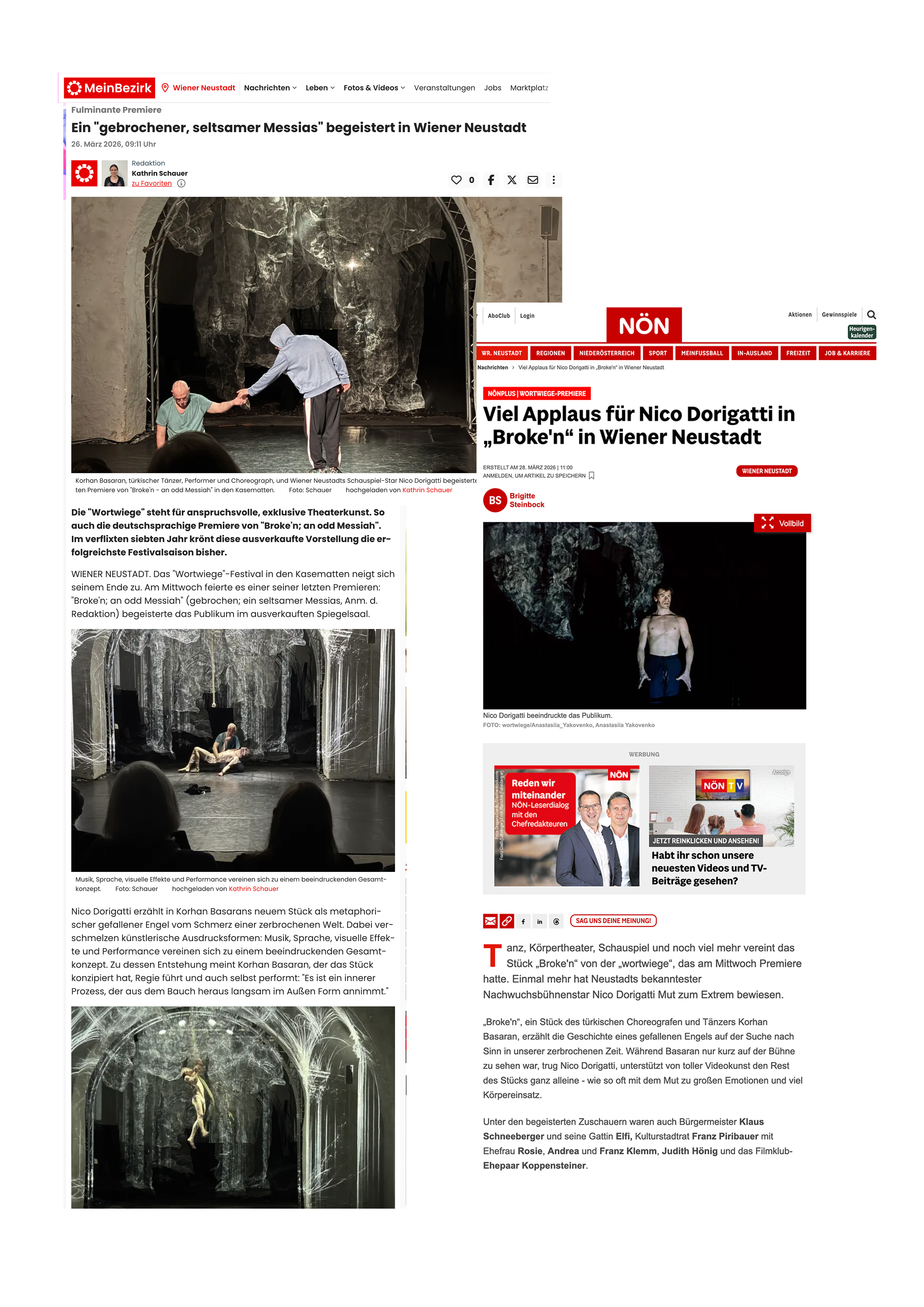 Posters, magazine clippings, reviews, festival material and performance coverage from Korhan Basaran’s public press archive.